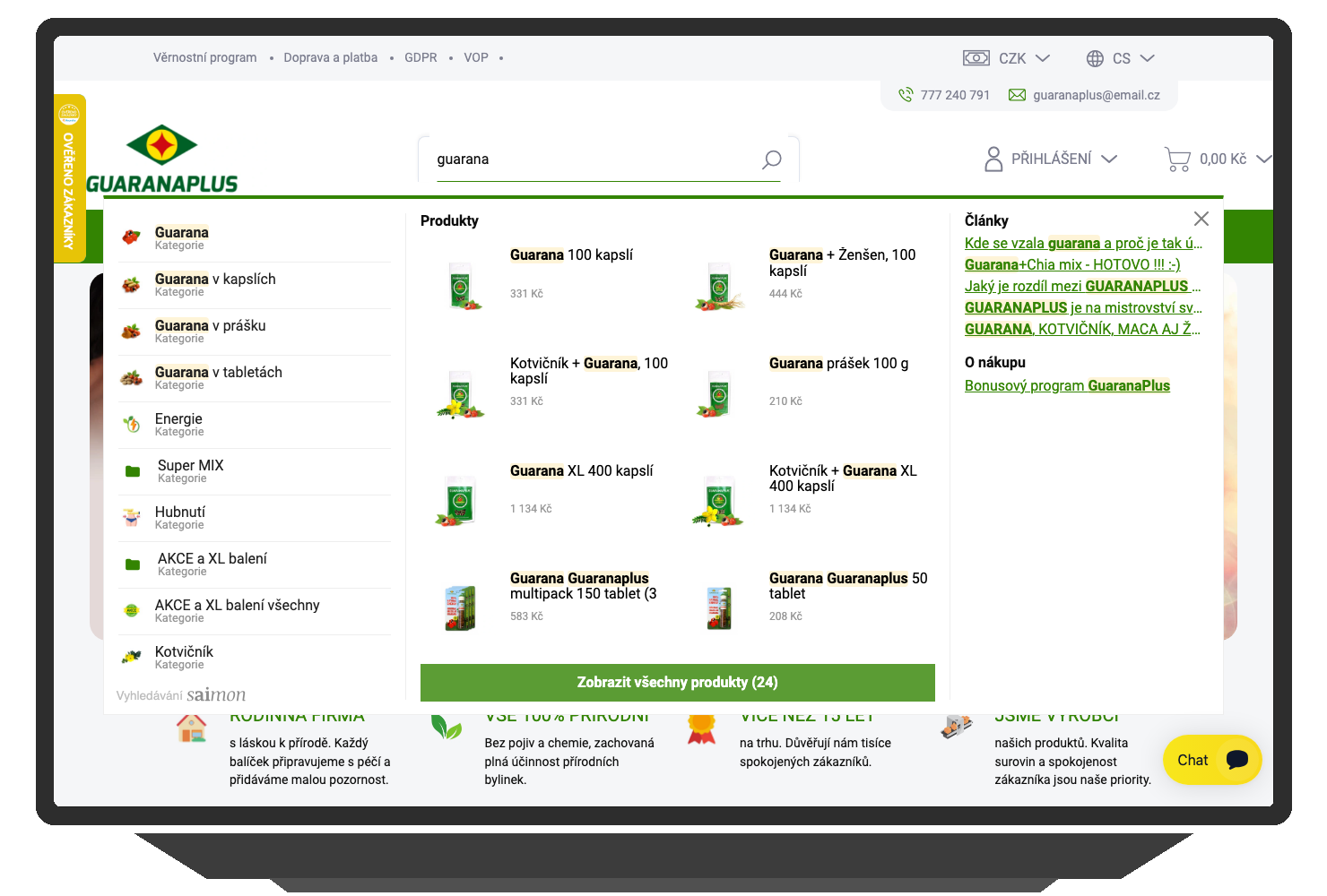 Na našem eshopu jsme řešili problém s vyhledáváním některých produktů. Vstřícný SAIMON® tým se mnou ihned komunikoval a po nasazení vyhledávání se naše výsledky zlepšily. Rozhodně doporučuji.